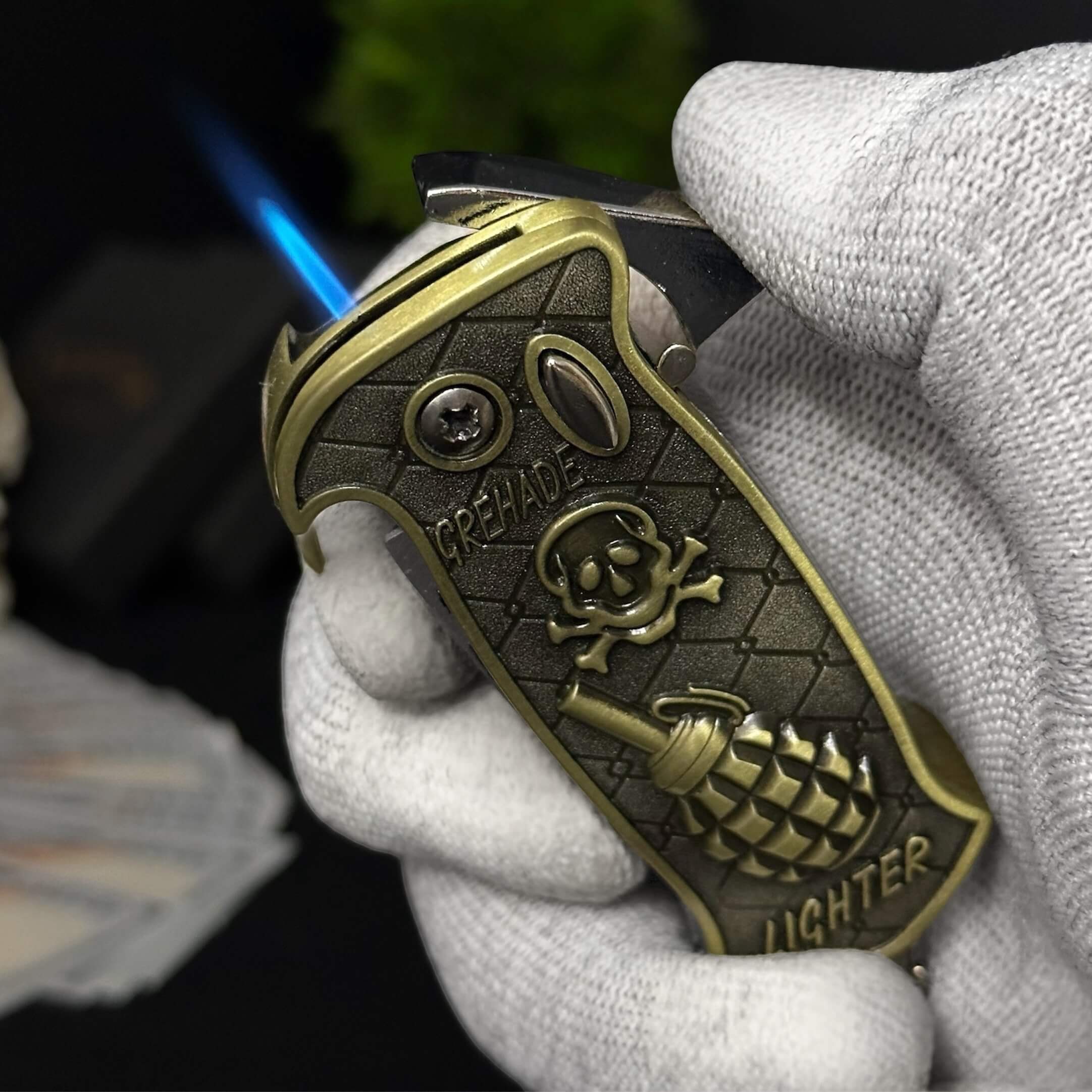 • 2-in-1: Folding knife + refillable butane torch lighter