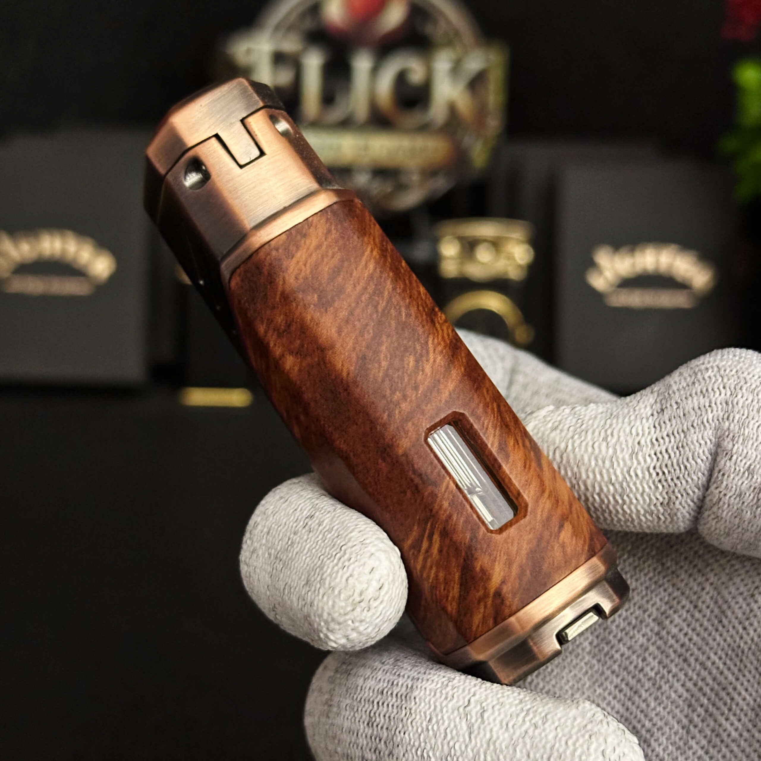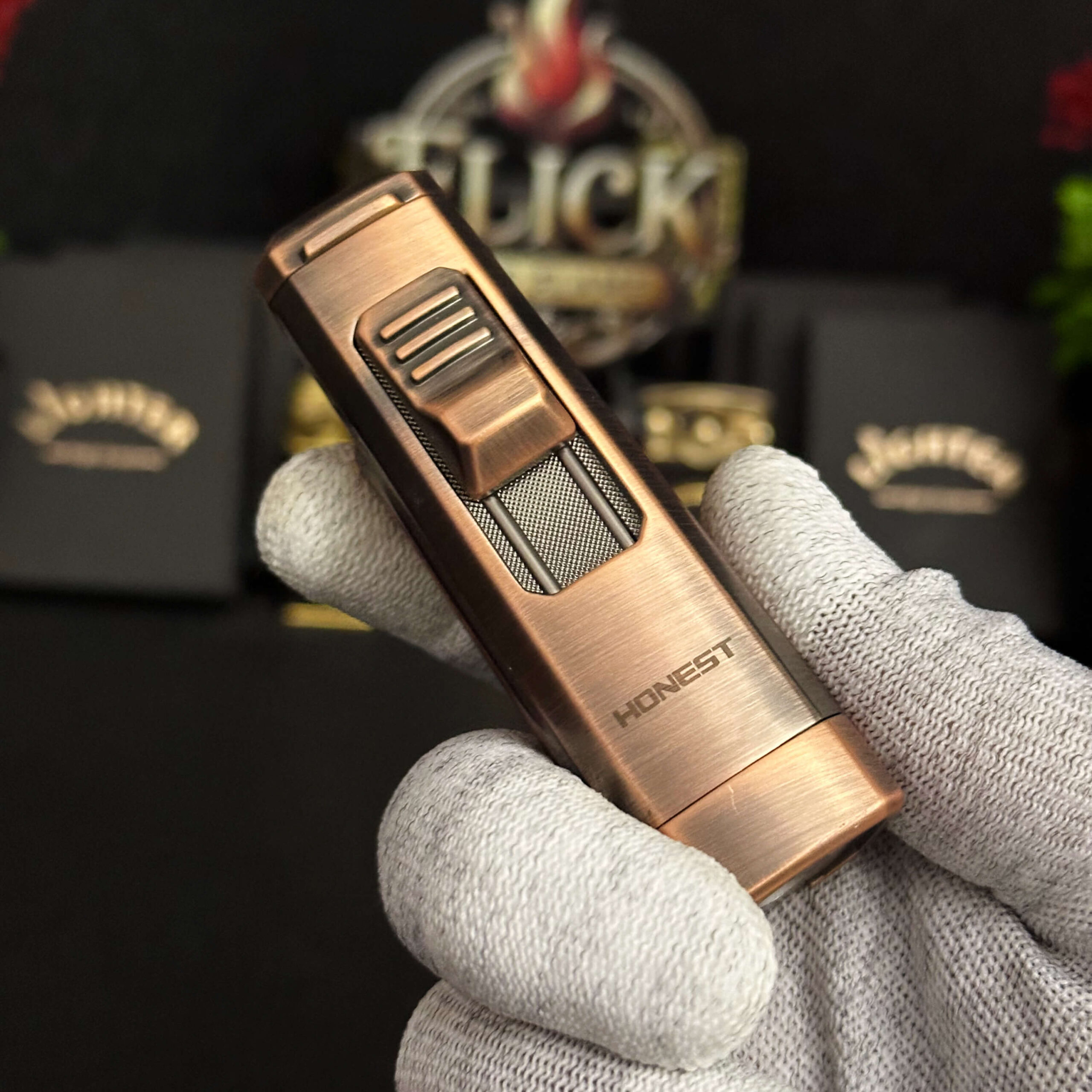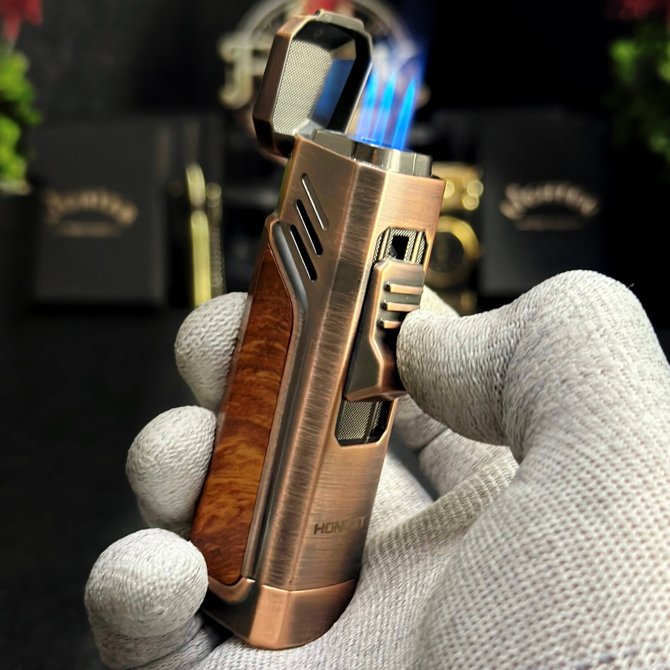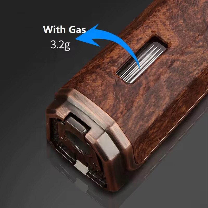 This Honest brand torch lighter features a sophisticated and elegant design with a combination of metal and wood grain finish, giving it a premium look and feel. The lighter has a jet flame mechanism, making it windproof and ideal for both indoor and outdoor use. The ergonomic grip and side ignition button ensure easy operation, while the solid build enhances durability. Perfect for cigar and pipe enthusiasts or as a stylish gift for collectors.