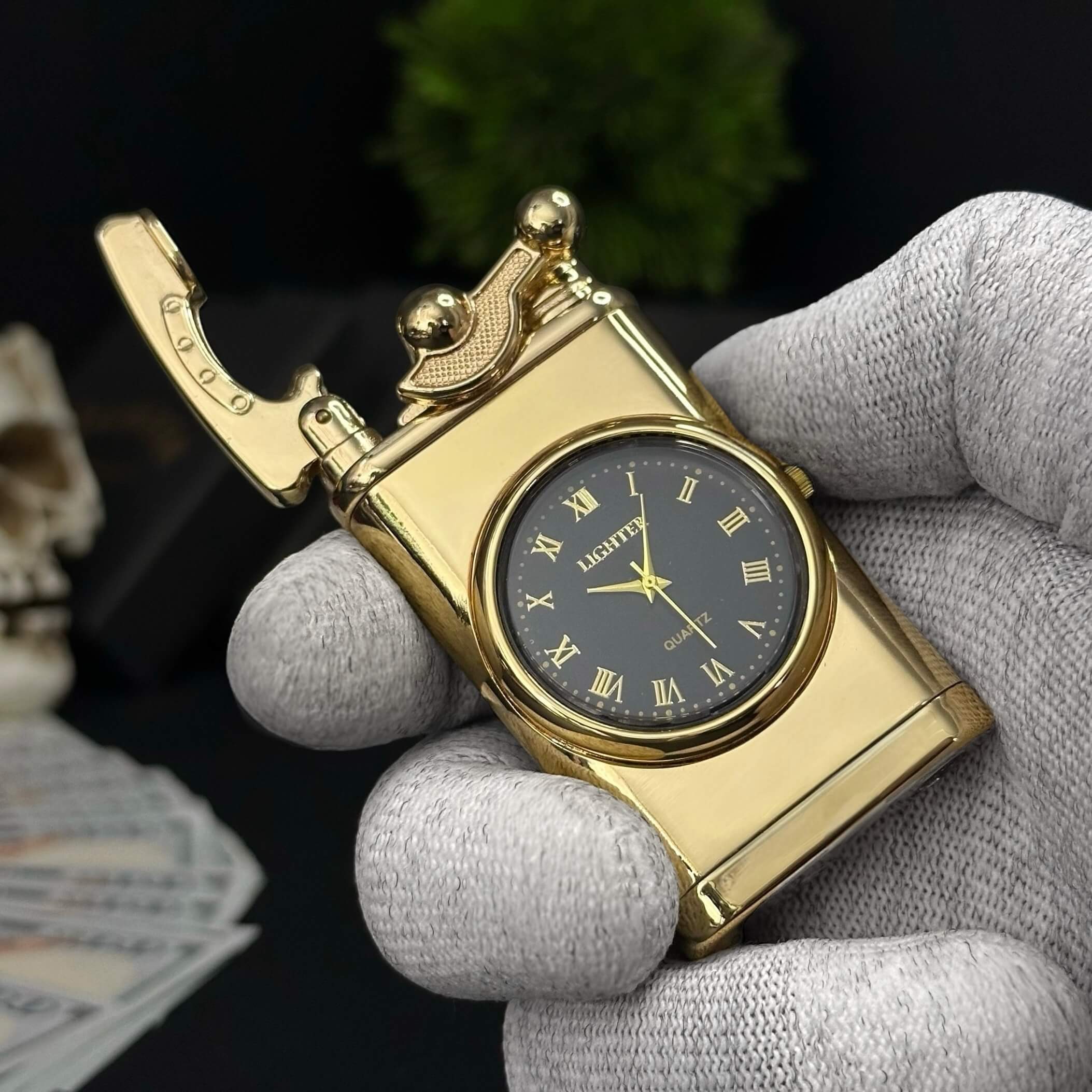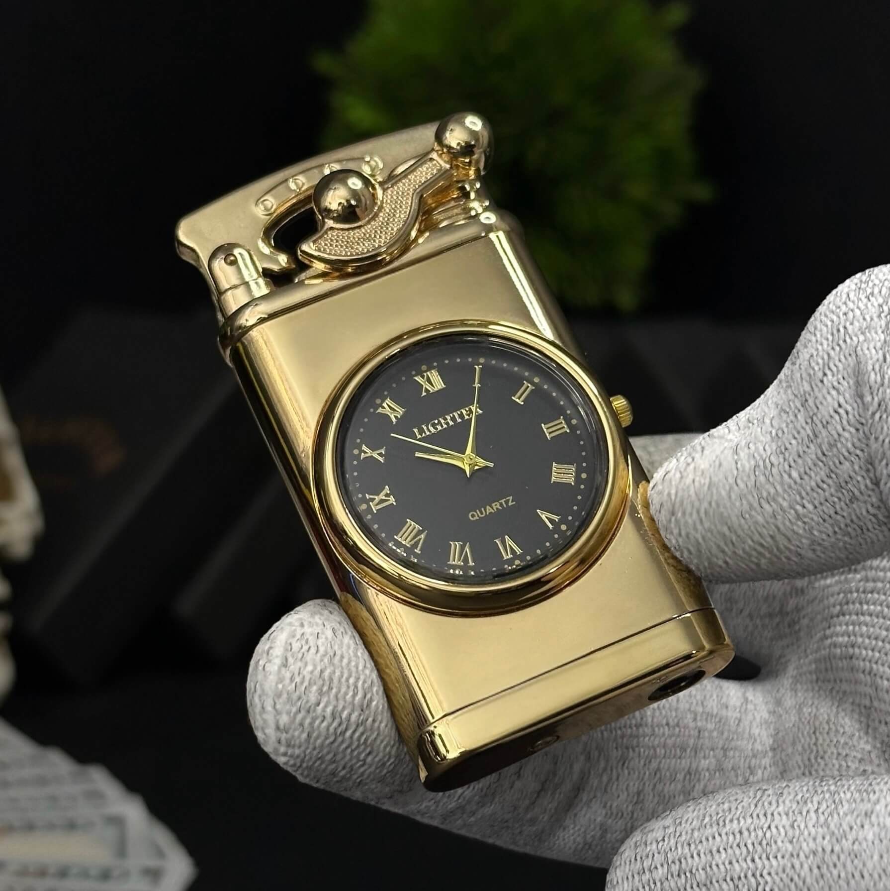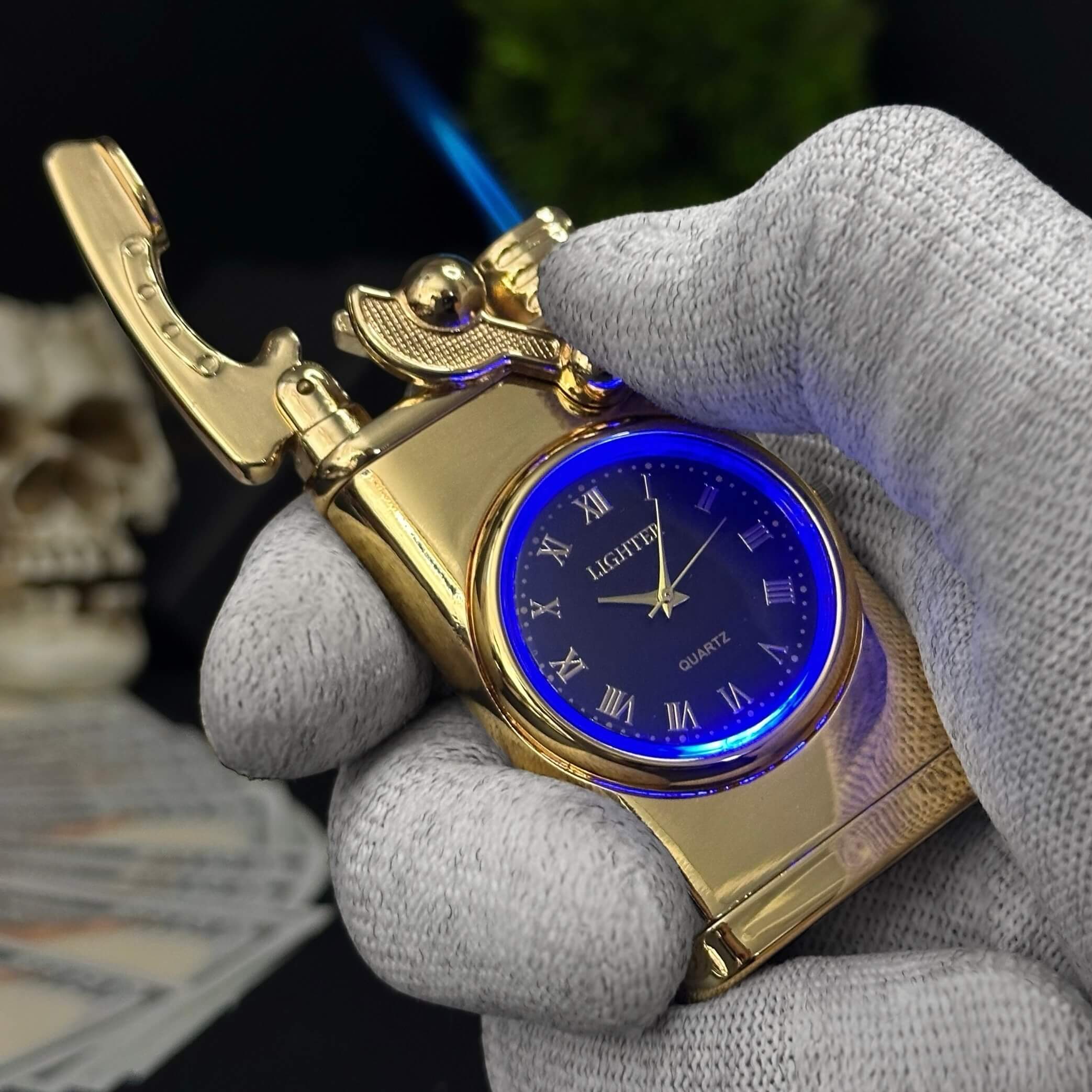 A striking fusion of classic timekeeping and modern flame. The Tower Clock Lighter features a bold gold finish, built-in quartz watch, and a strong blue flame for a timeless look and performance.